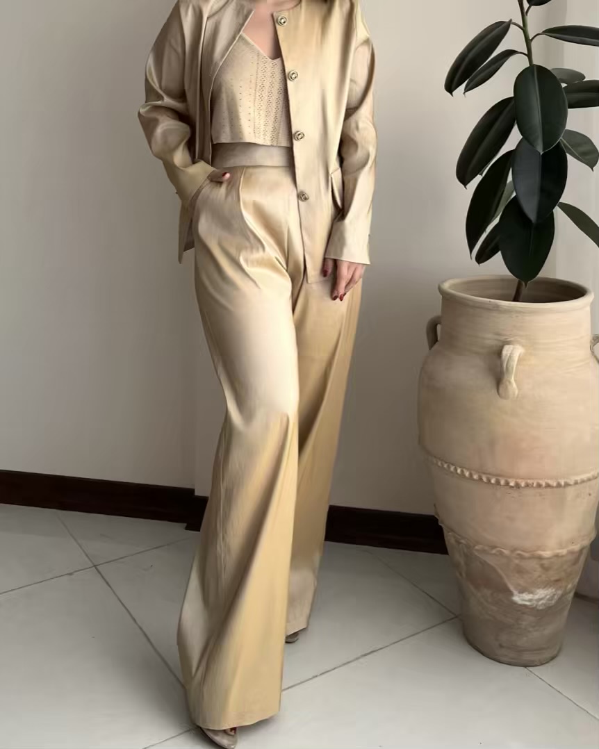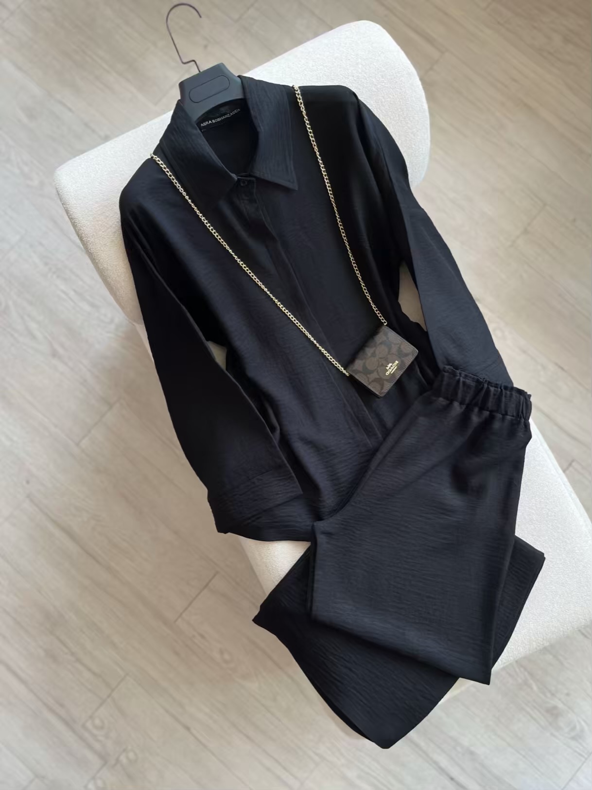 ست شومیز شلوار مشکی شانتون نخ زنانه