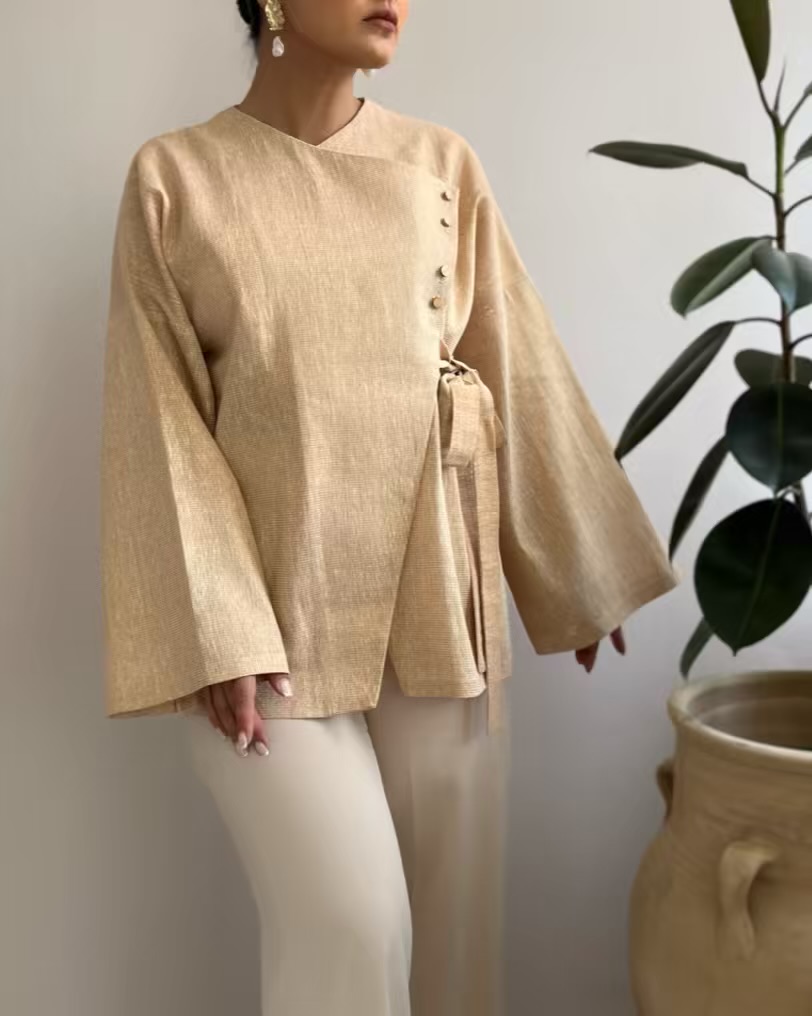 این مانتو را روی تاپهای ساده بپوشید و با شلوارهای پارچهای یا جین ست کنید. استفاده از کفش پاشنهکوتاه استایلی شیک میسازد.