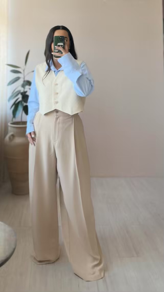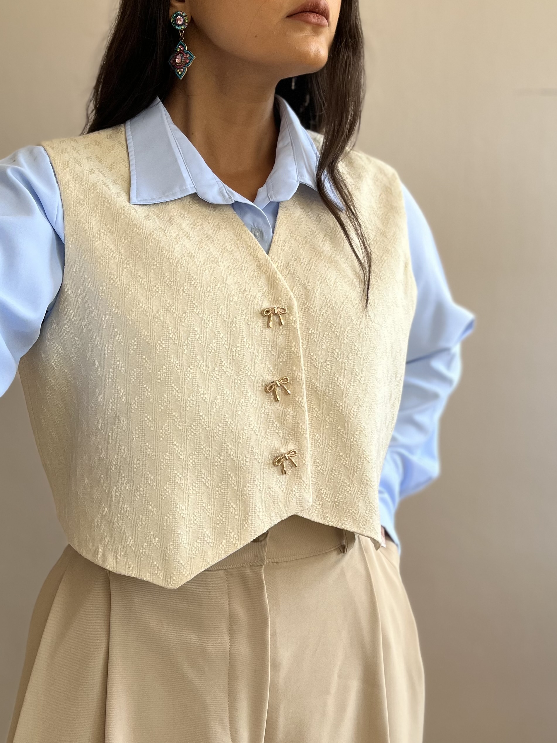 این جلیقه را روی شومیزهای آستین بلند یا تیشرتهای ساده بپوشید و با شلوار جین فاق بلند استایلی جذاب بسازید.