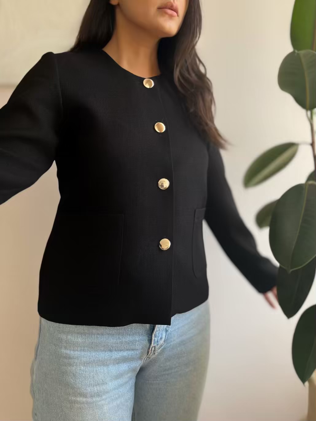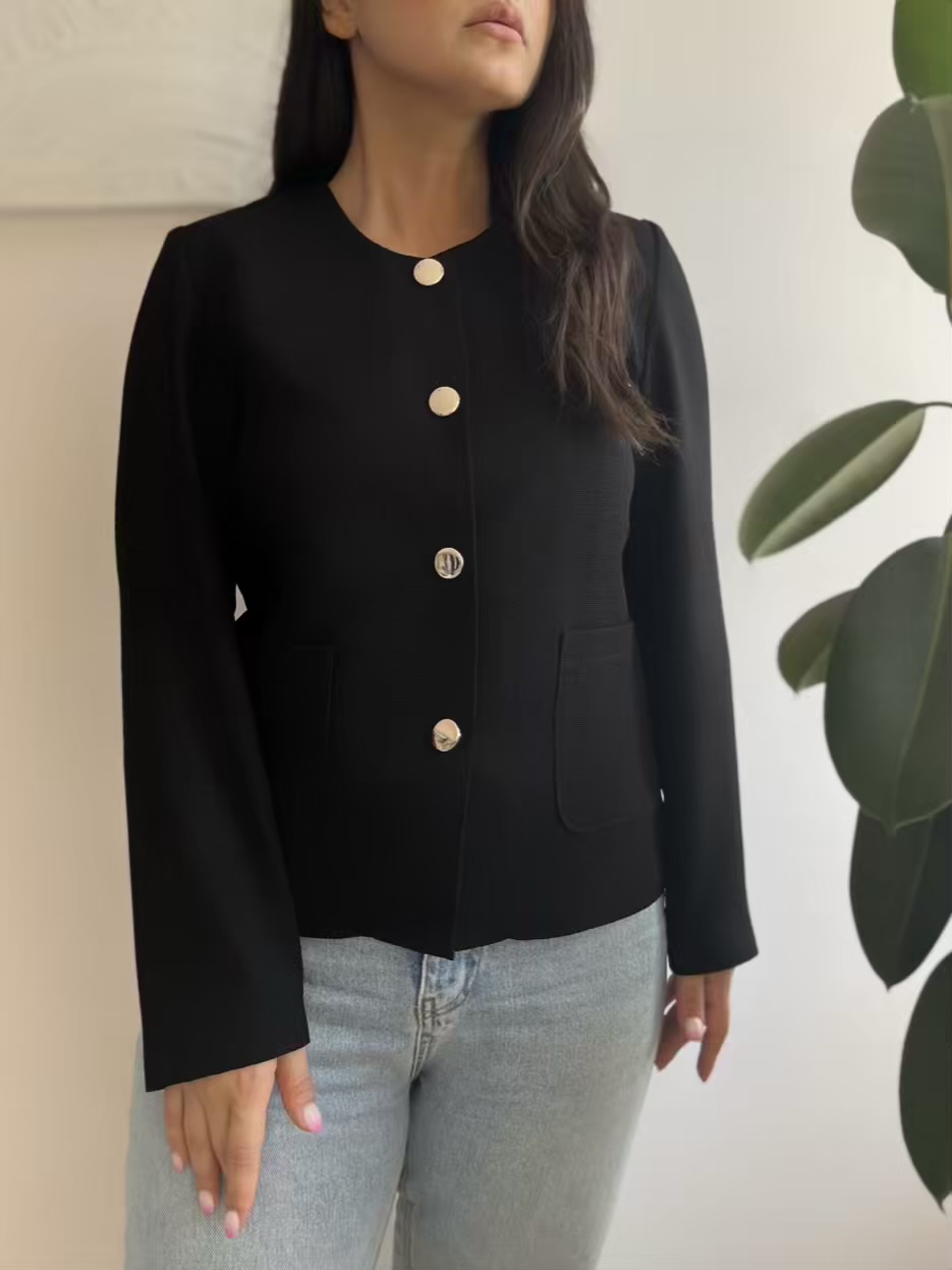 این کت را روی پیراهنهای مجلسی یا با شلوار و شومیز ست کنید. رنگهای خنثی آن با هر رنگی هماهنگ میشود.