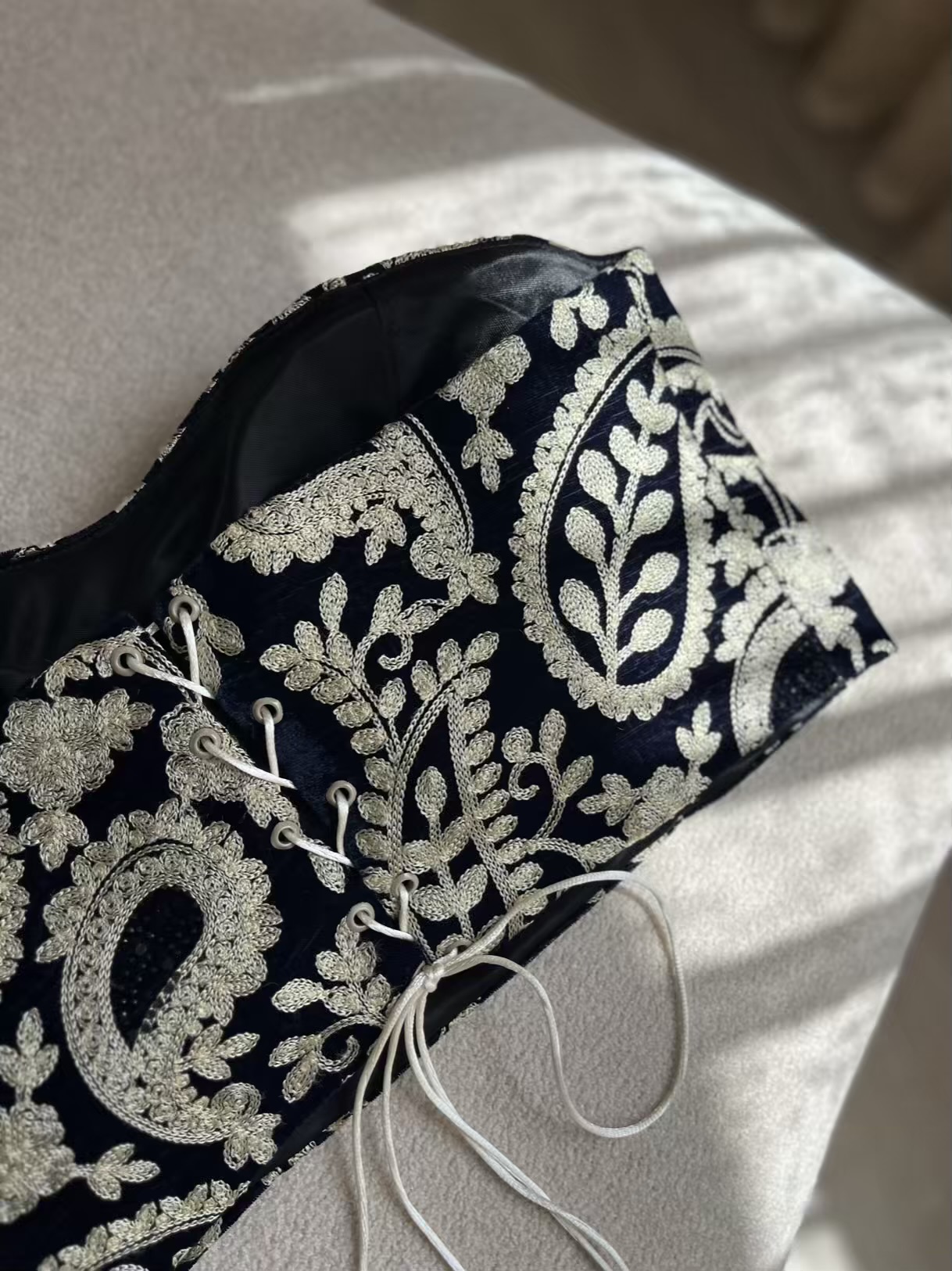 نیمتنه مجلسی از جنس مخمل با سوزندوزی ظریف، انتخابی لوکس برای مهمانیها و مجالس است. کاپدار و آستردار بودن آن، پوشیدن را بسیار راحت کرده است.