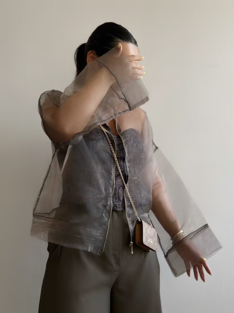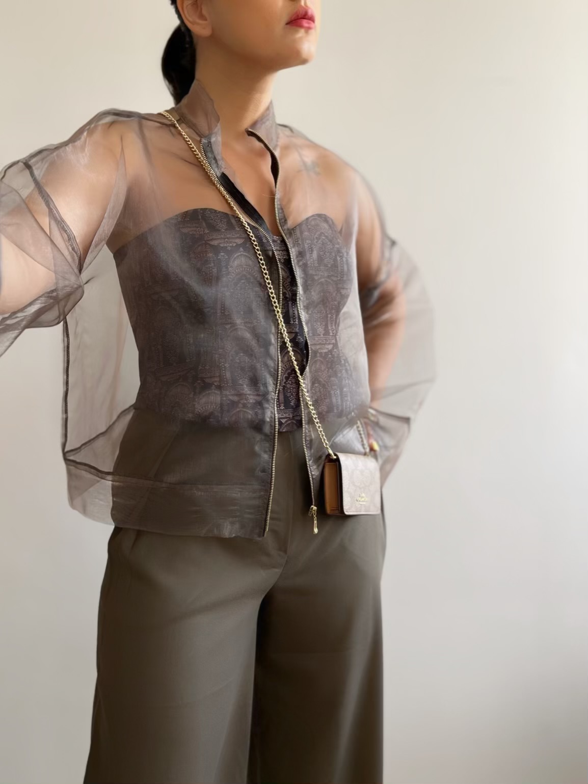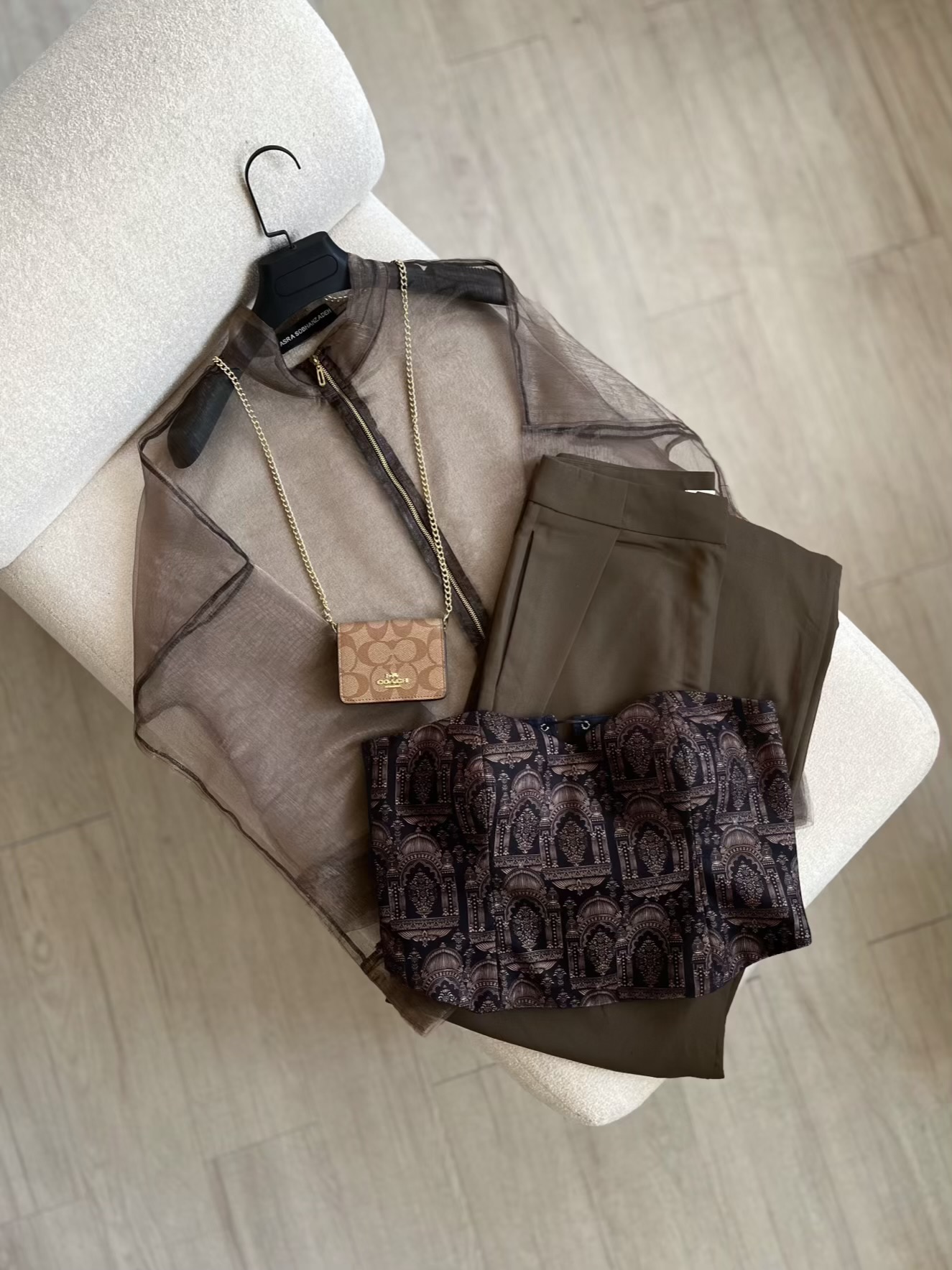 این بامبر را روی تاپهای نخی یا شومیزهای حریر بپوشید و با دامن یا شلوار پارچهای ست کنید.