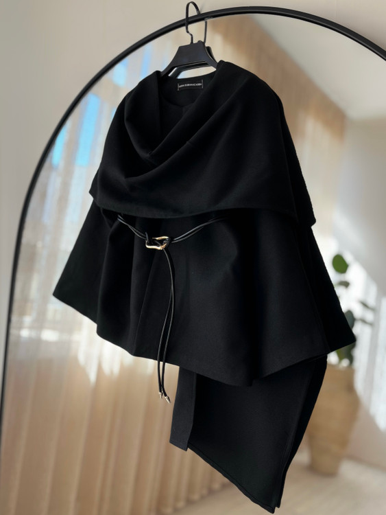 پالتوکشمیرمشکی آستردار زنانه مدل شالدار