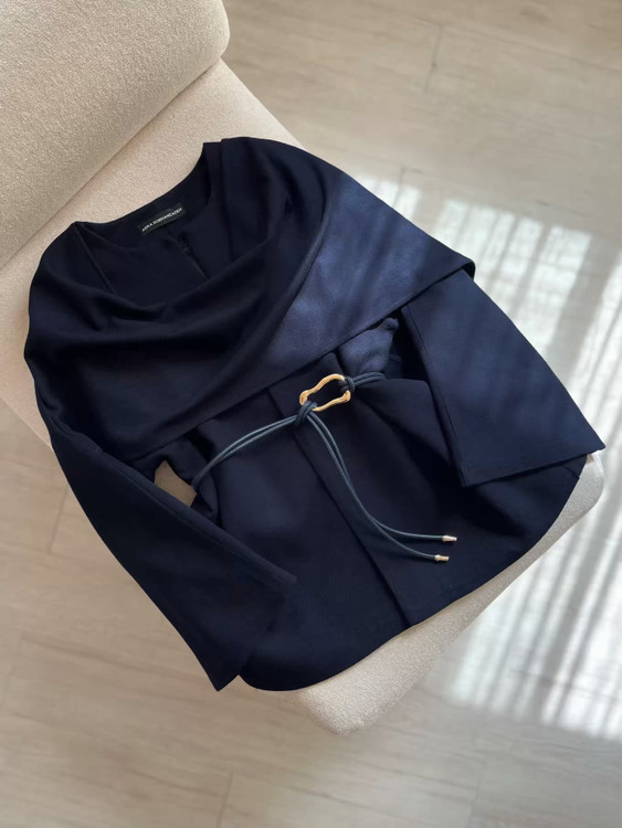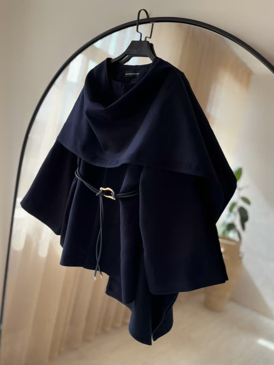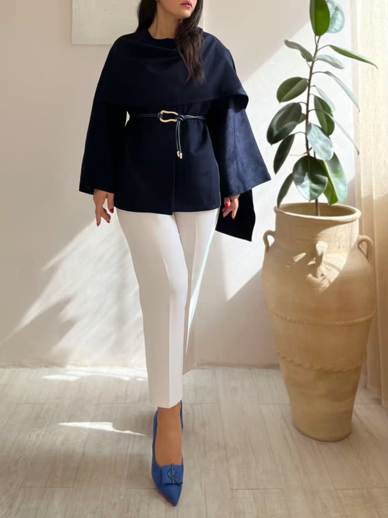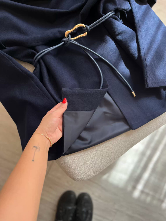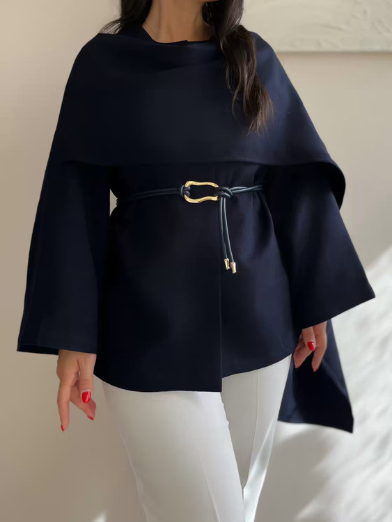 پالتو کشمیر سورمه‌ای آستردار زنانه مدل شالدار