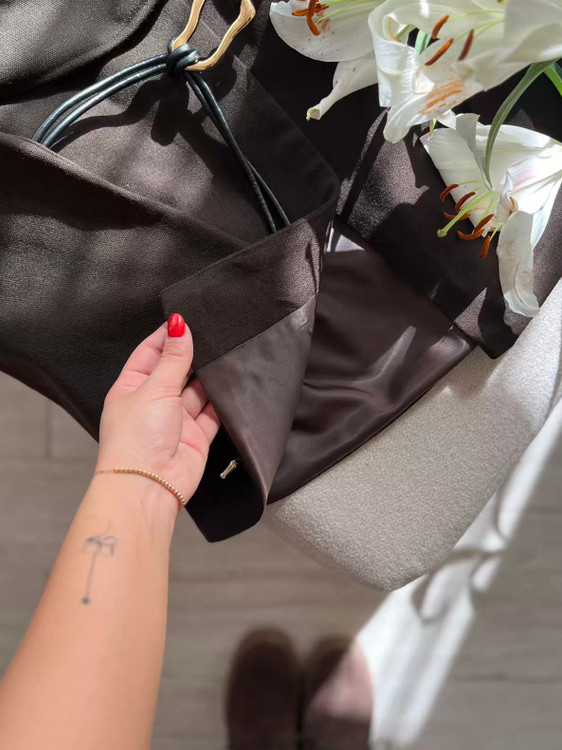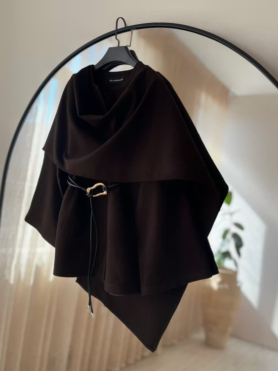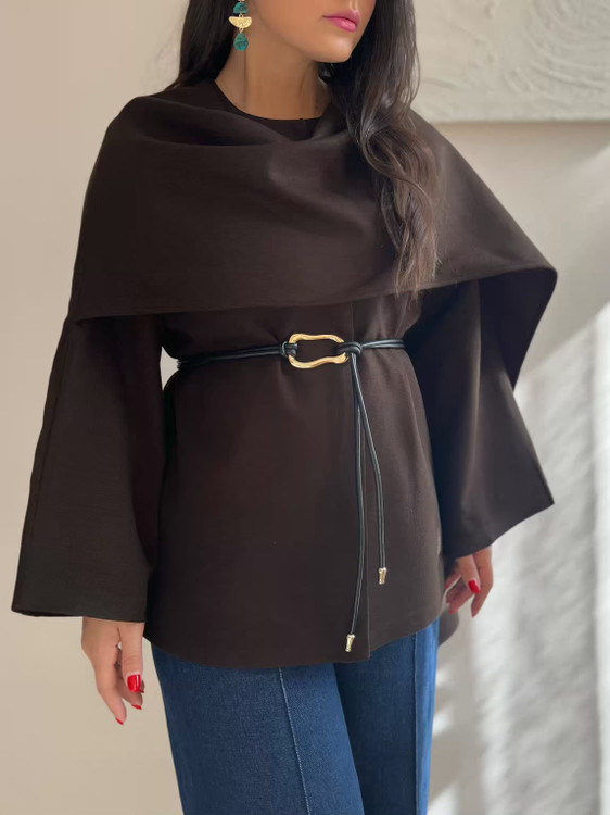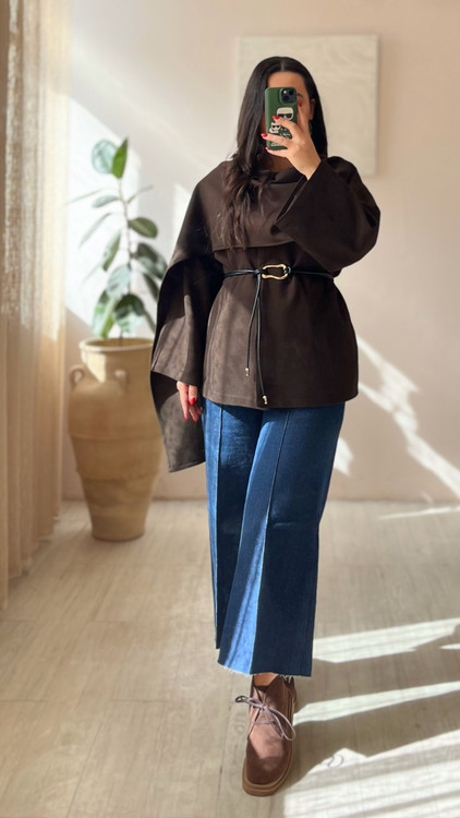 پالتوکشمیرقهوه‌ای آستردار مدل شالدار