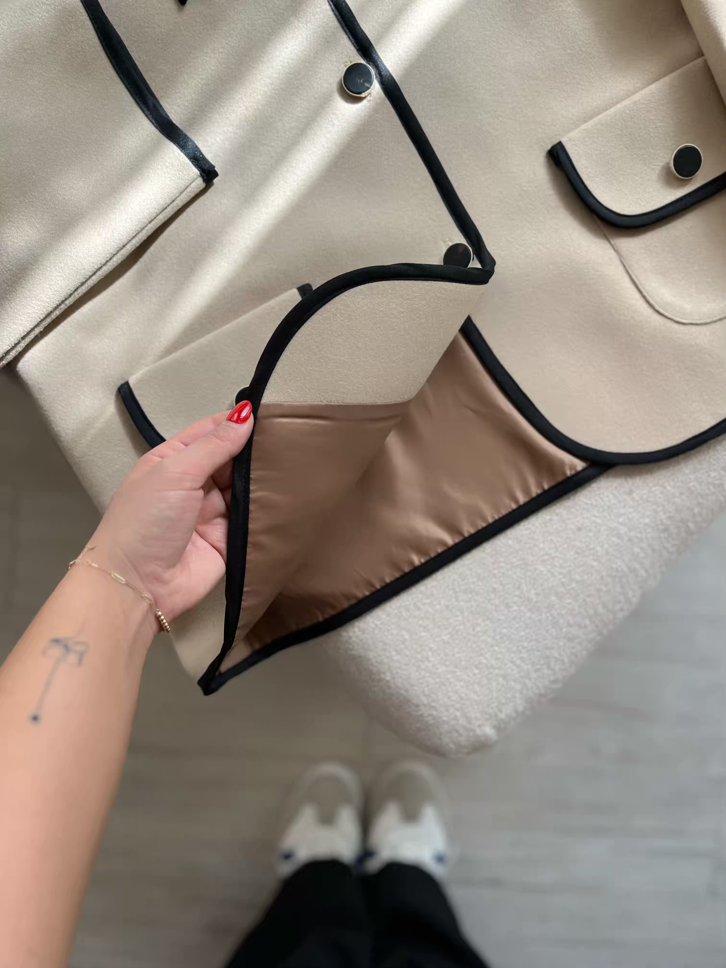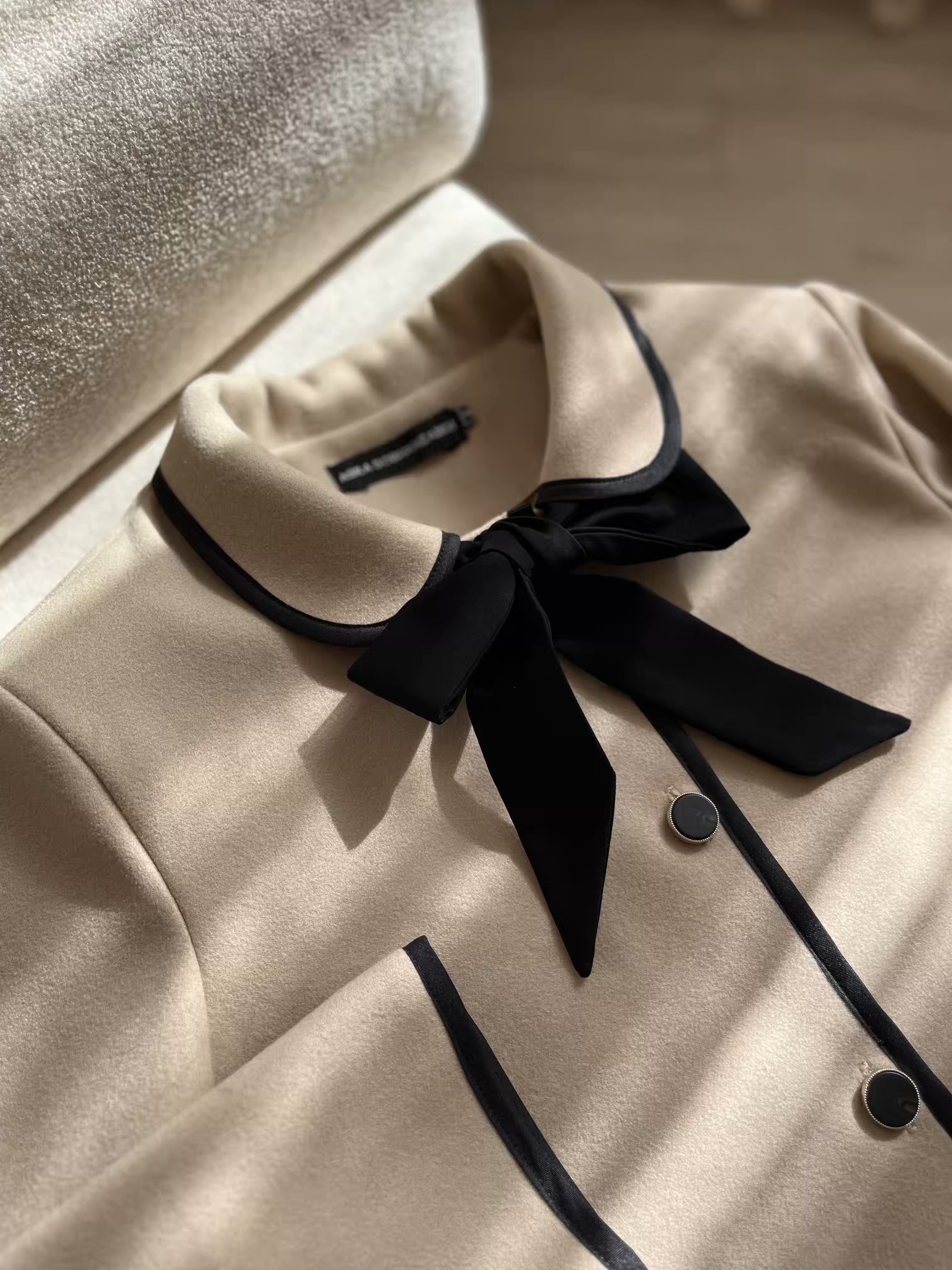 کت فوتر ترک آستردار در سایزبندی طبق جدول به همراه کراوات مشکی نواردوزی شده دکمه های کاربردی ترک سرشانه برای ایست بهتر اپل دار