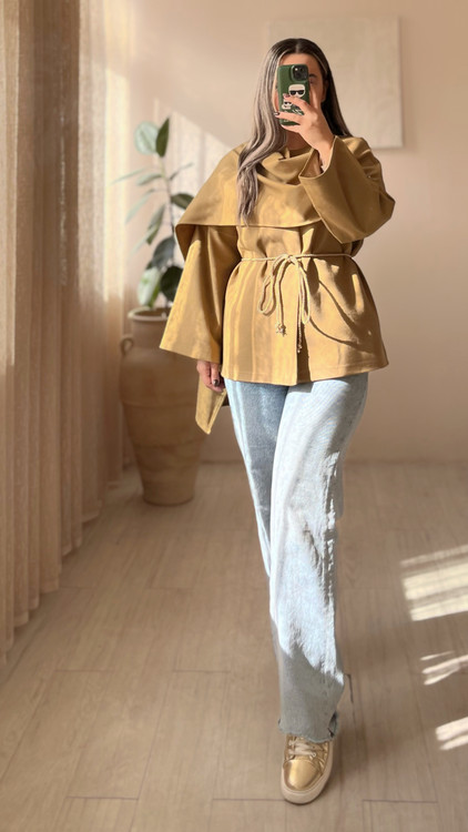 پالتو کشمیر کرم نخودی آستردار زنانه