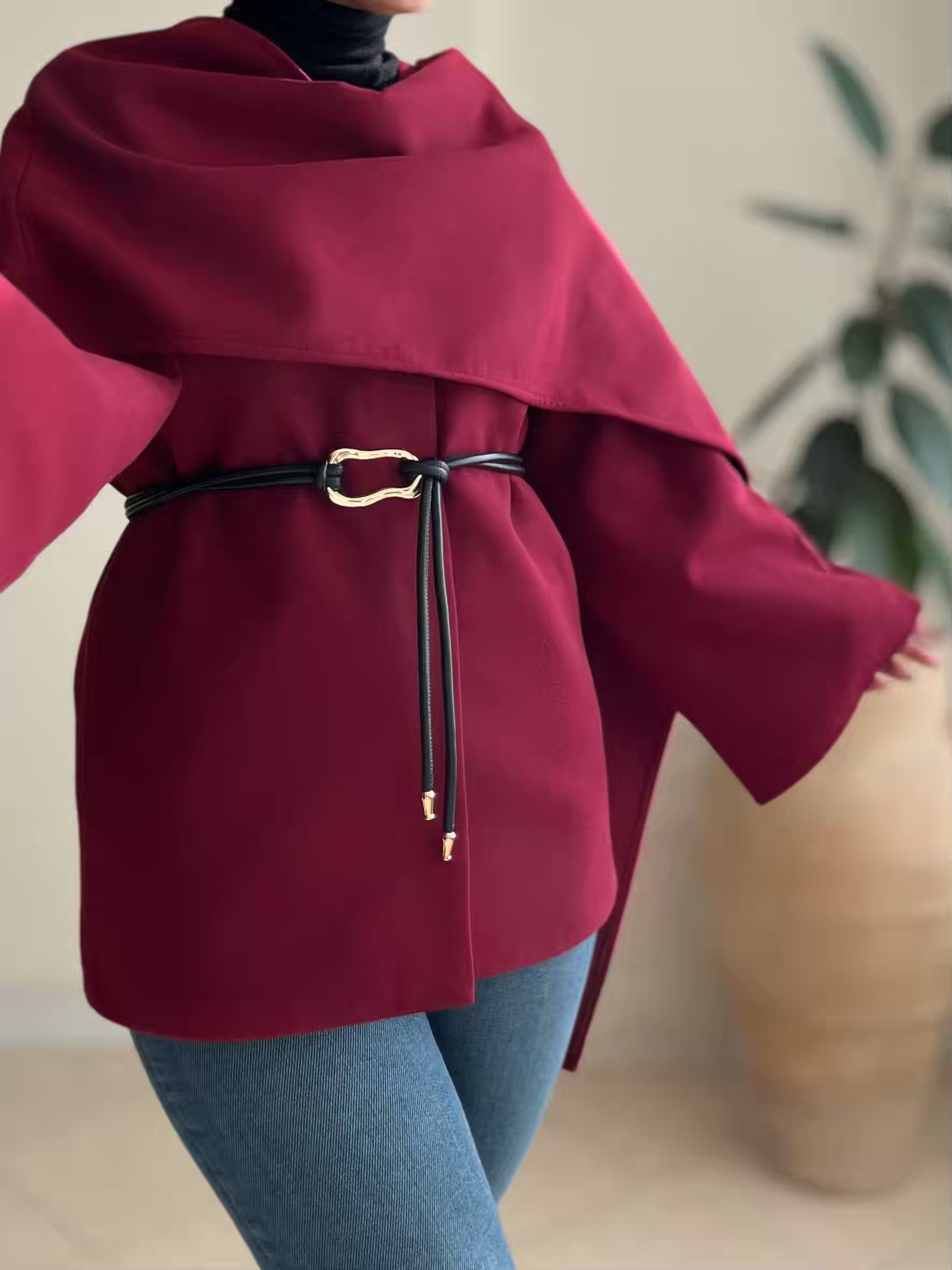 پالتو فوتر آستردار زنانه مدل شالدار-آلبالویی