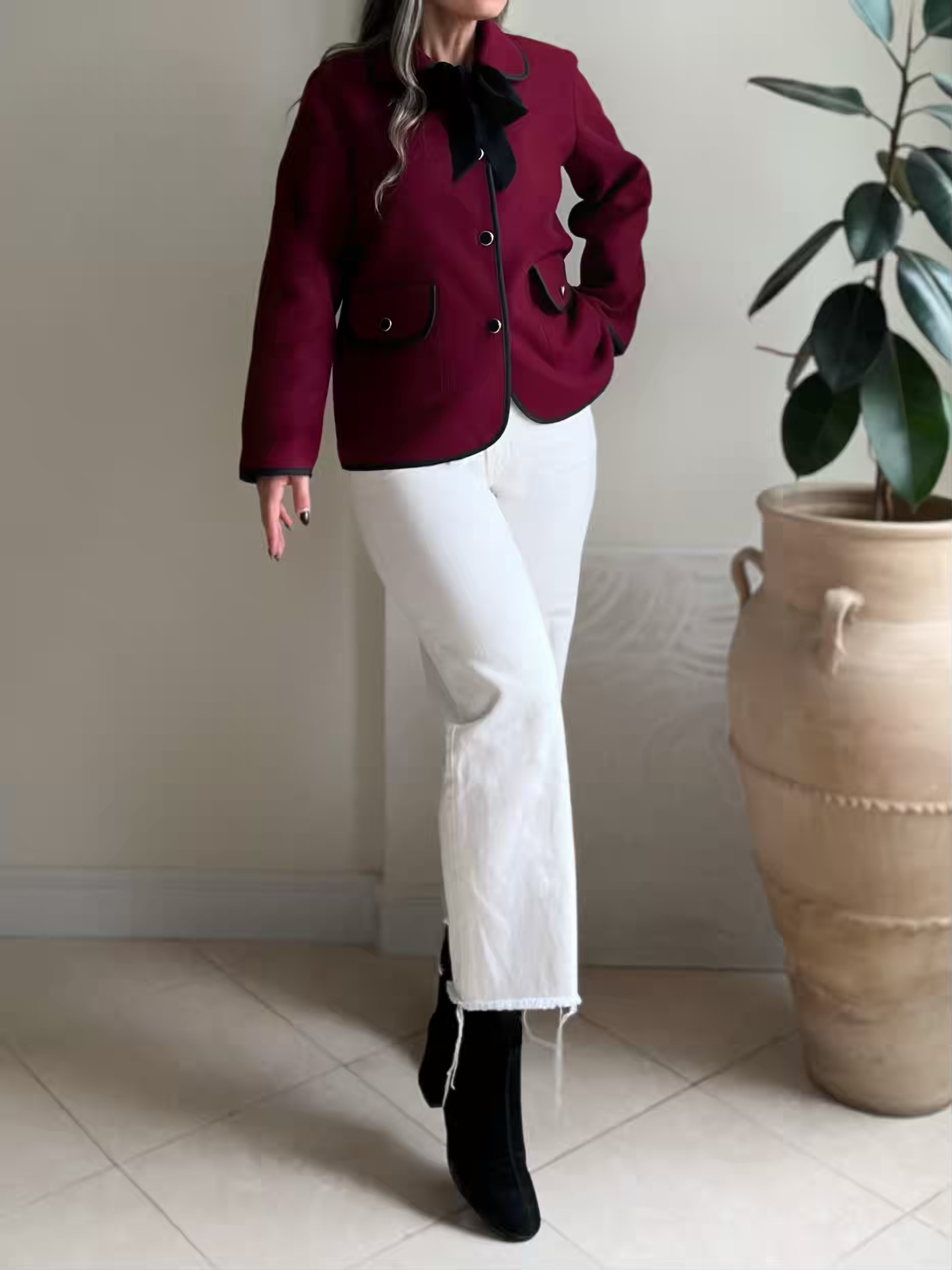 کت فوتر آلبالویی تیره آستردار یقه ب ب زنانه